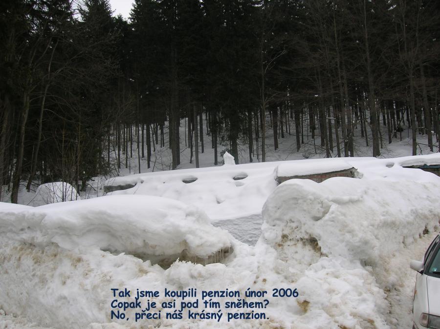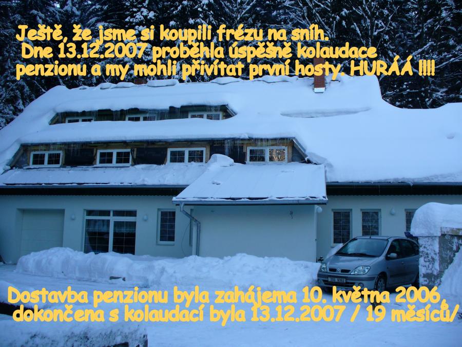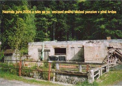 V únoru 2006 jsme zakoupili zchátralý penzion a na jaře, když zmizel sníh jsme mohli začít s kompletní rekonstrukcí - celkovou demolicí zbytků stavby a stavbou od základů.